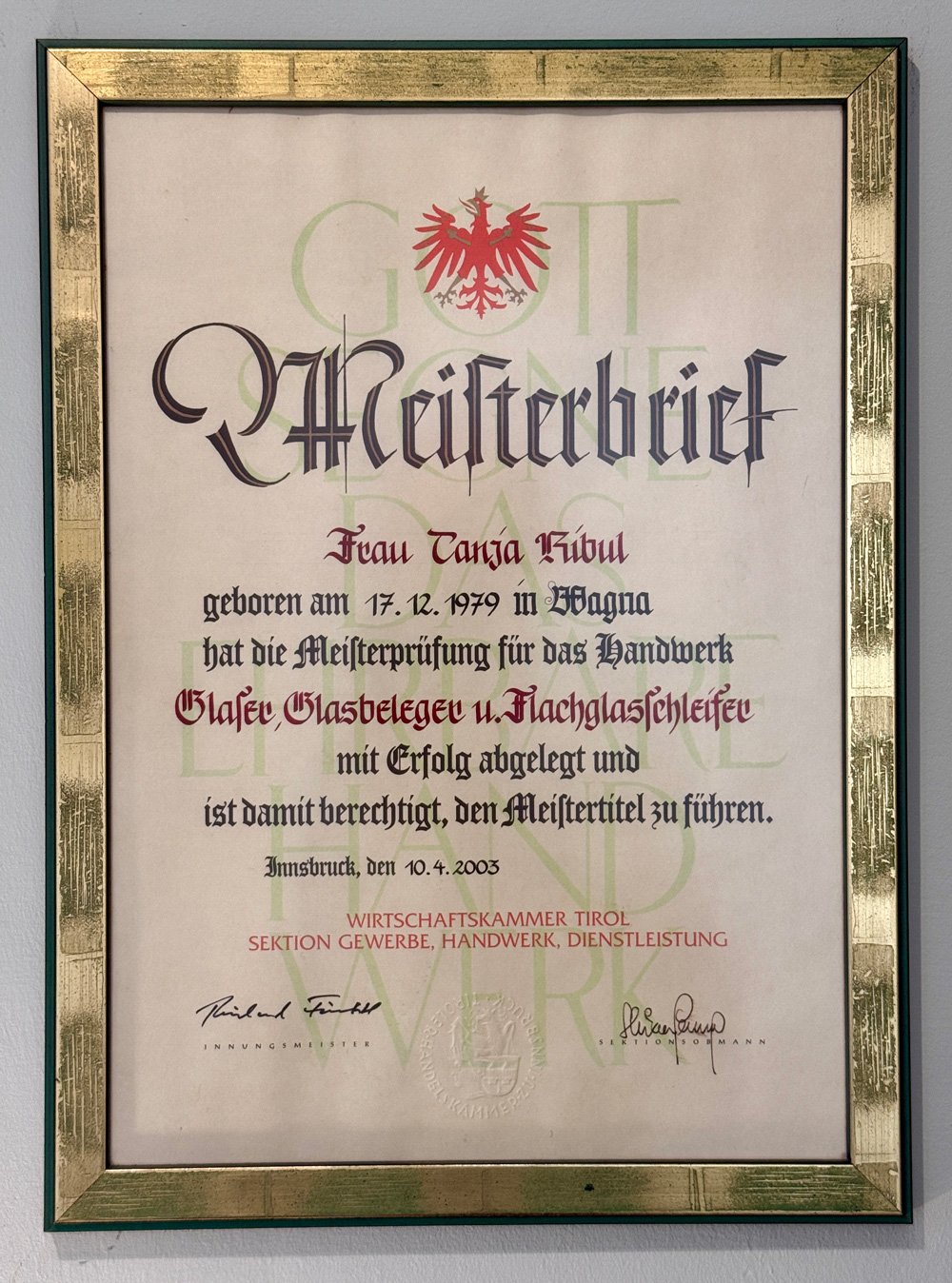 Vor 145 Jahren legte Giovanni Ribul de Moro in Strass in der Steiermark den Grundstein für eine Familientradition, die bis heute lebendig ist. Mein Urgroßvater Cyprian Ribul übernahm die ursprüngliche Glaserei in Strass. Seine Söhne Franz, Robert und Johann führten diese Tradition fort und gründeten Glasereien in Strass, Leibnitz und Wies. Mein Großvater, Franz Ribul, geboren 1914, führte die Glaserei in Strass weiter. So wuchs das Erbe der Familie, und es gab eine Zeit, in der sechs Glasermeister in der Familie Ribul aktiv waren – ein Zeichen unserer tiefen Verwurzelung im Handwerk.